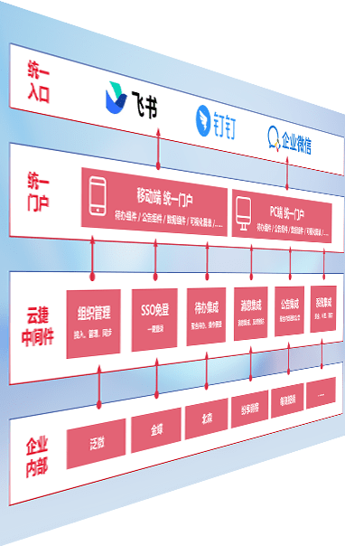 对协作平台提供支持服务,,,支持企业应用与协作平台对接,,包含组织同步、、、、消息集成、、、待办集成等。。。支持目前主流的协作平台:钉钉、、、、企微和飞书。。。。